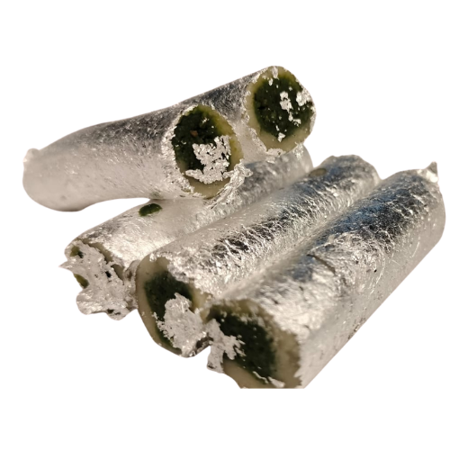 Pista Roll is a luxurious Indian sweet crafted with a smooth outer layer of cashew paste wrapped around a rich pistachio filling. Its soft texture, vibrant green color, and nutty flavor make it a perfect choice for festive gifting, celebrations, and premium sweet assortments. Prepared with high-quality ingredients and desi ghee, it delivers both taste and elegance.